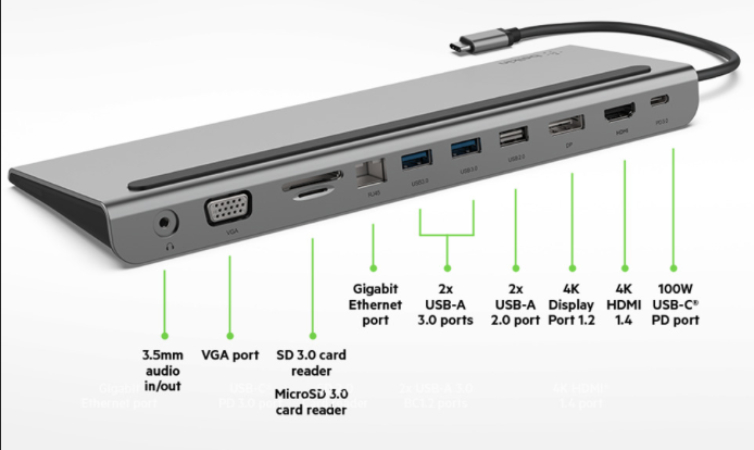 USB/USB-C/HDMI/VGA/jack/ethernet