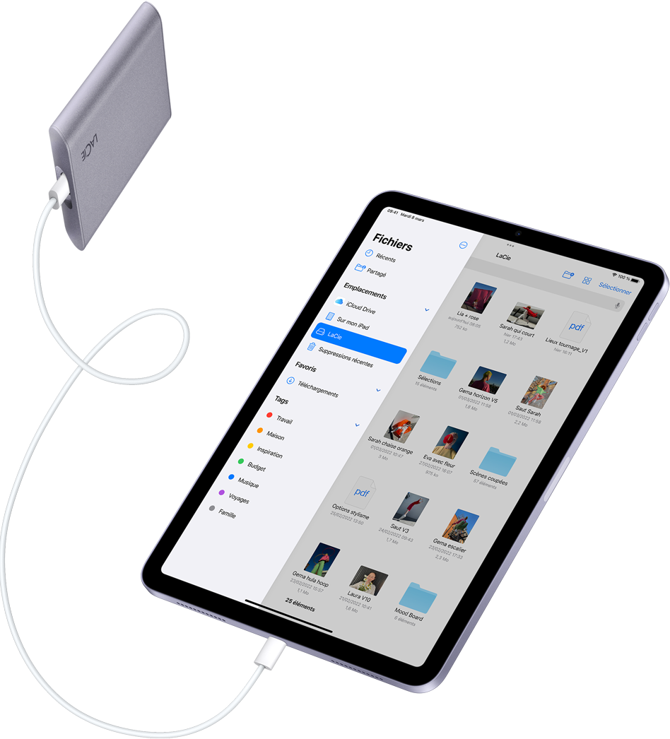 Branchez des disques externes, des stations d’accueil, des appareils photo et autres périphériques au port USB‑C, et bénéficiez de vitesses de transfert jusqu’à 2 fois plus rapides que sur la génération précédente.